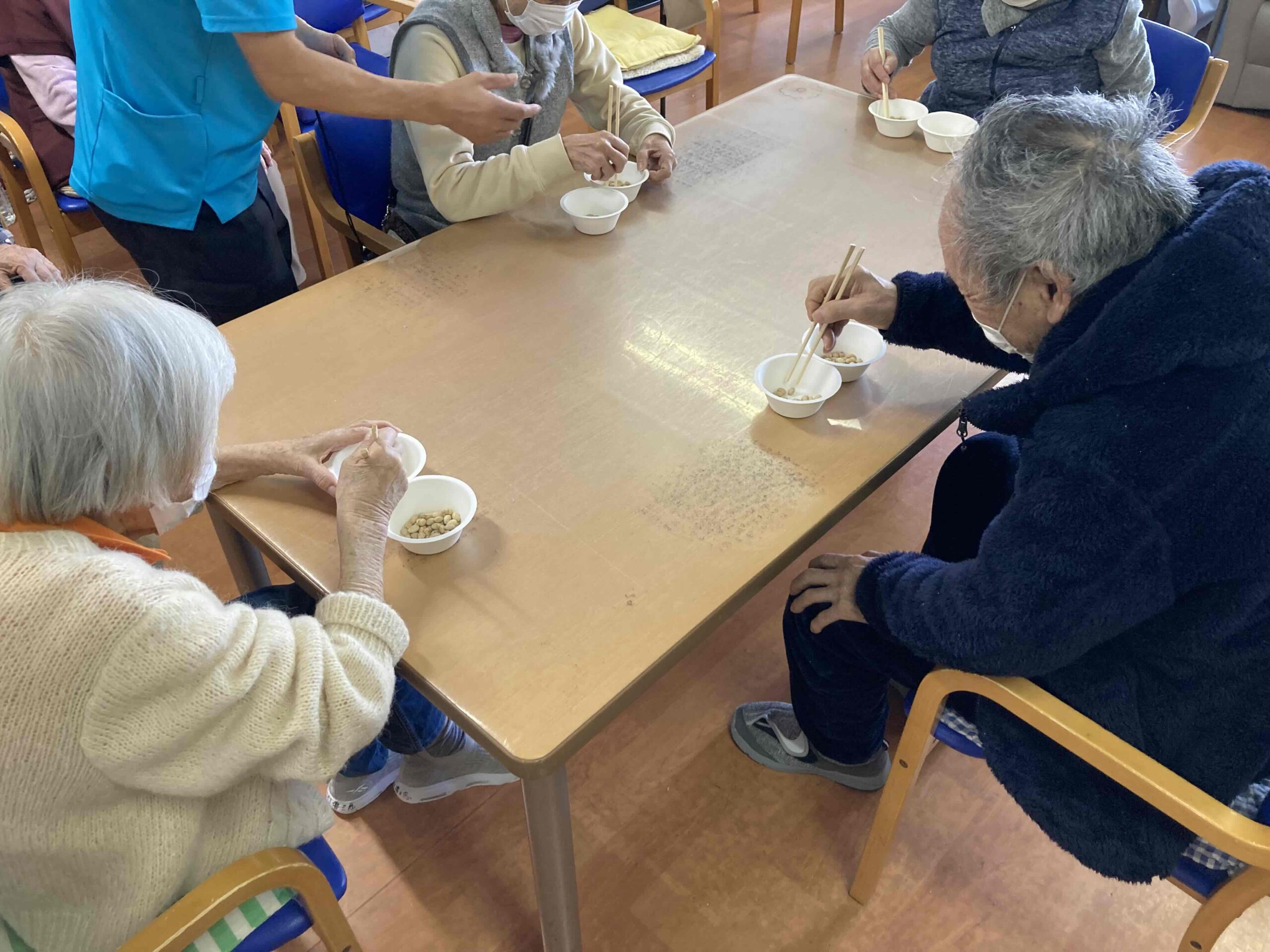 2/3 節分デーとしまして、福豆を使ったレクリェーションをしました。