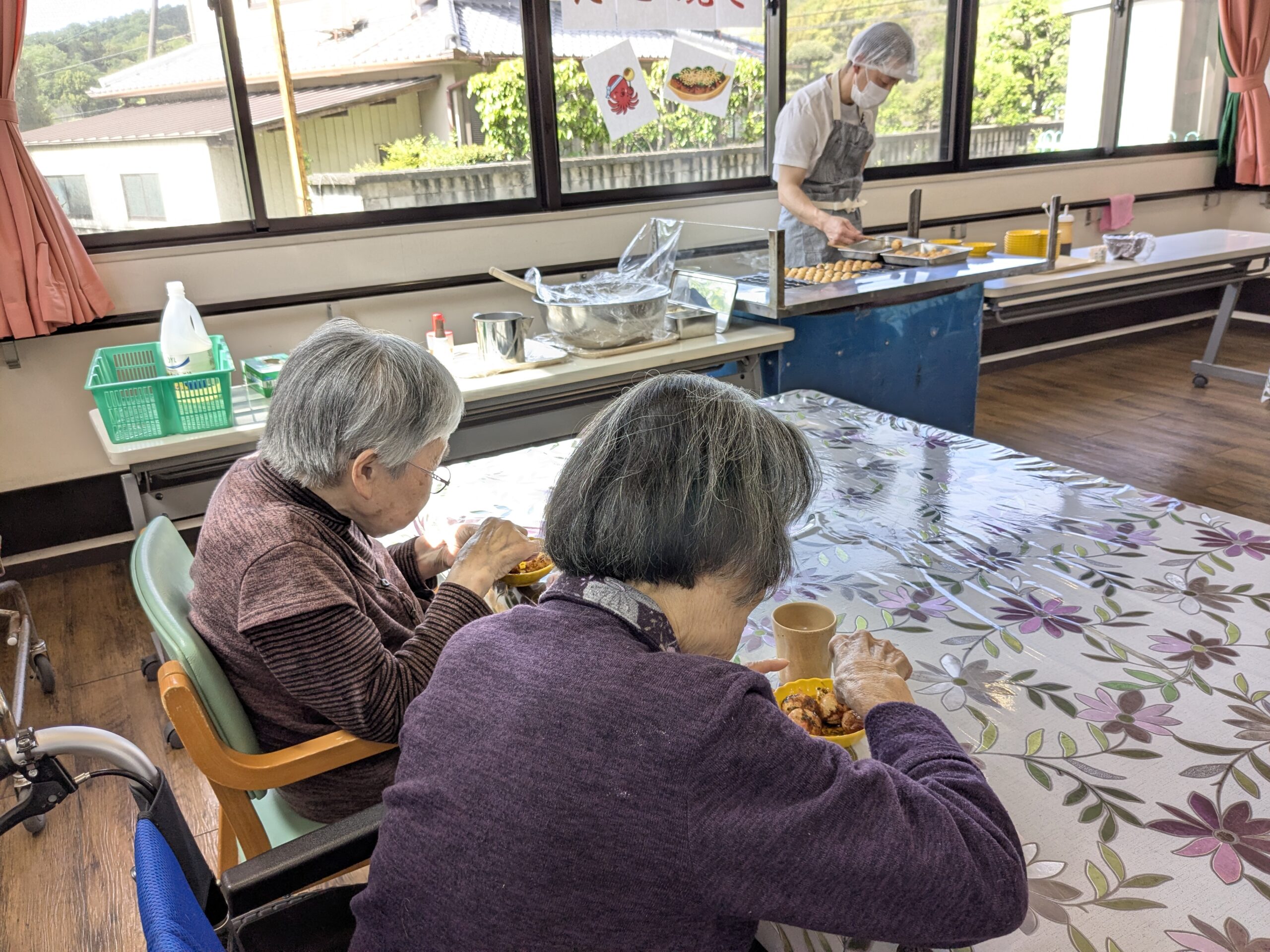 今日は、数か月ぶりのたこ焼きデーを開催しました。皆さま、なじみのあるたこ焼きなので