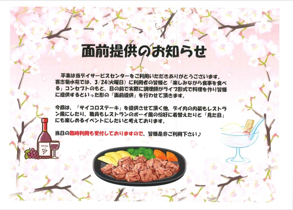以前から面前提供は行っていたのですが、今回は内容を一新!!ただ「食べる」