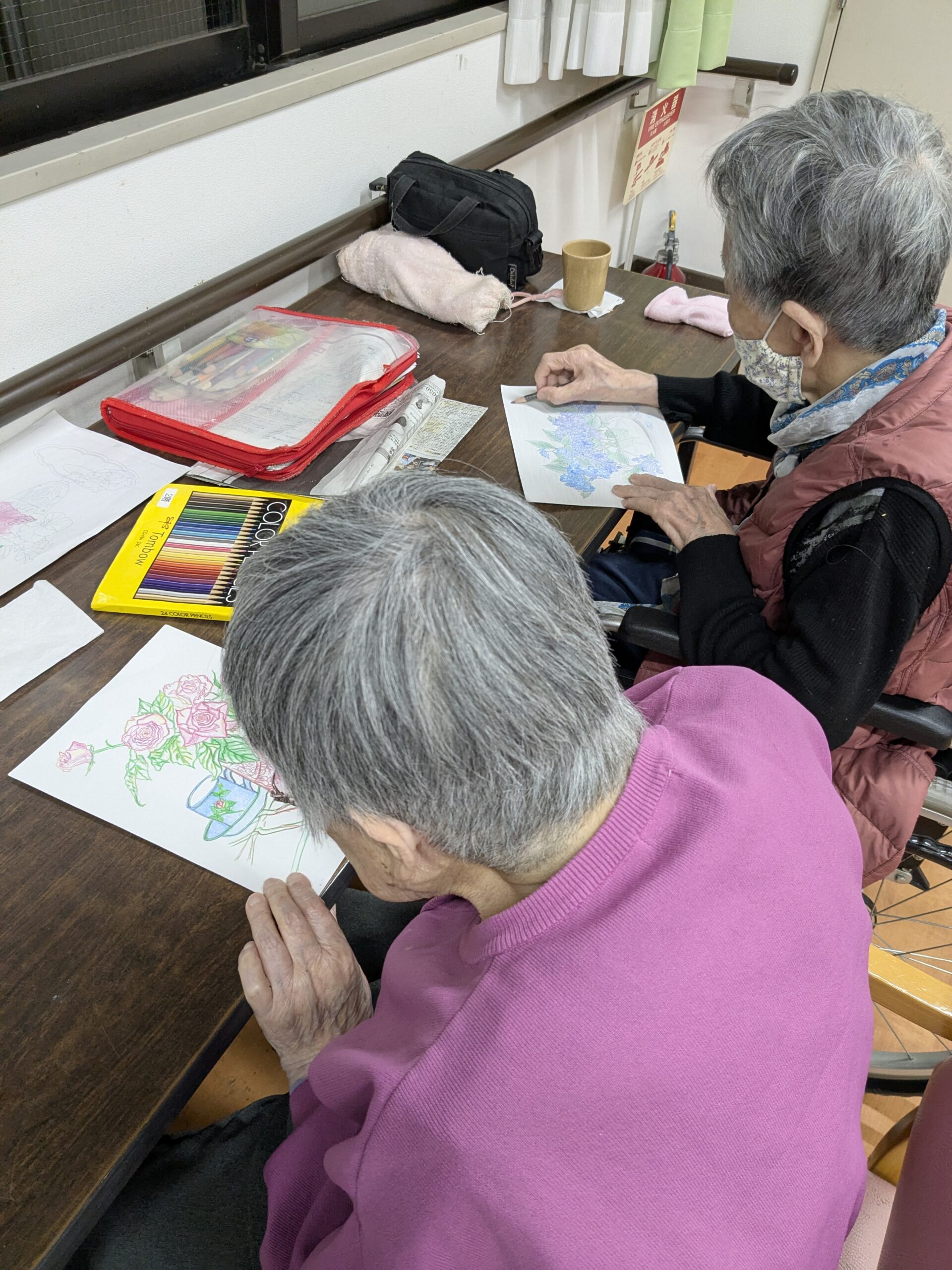 菊水苑の利用者の中には、塗り絵のレクリエーションに参加されておられる方がいらっしゃいます。