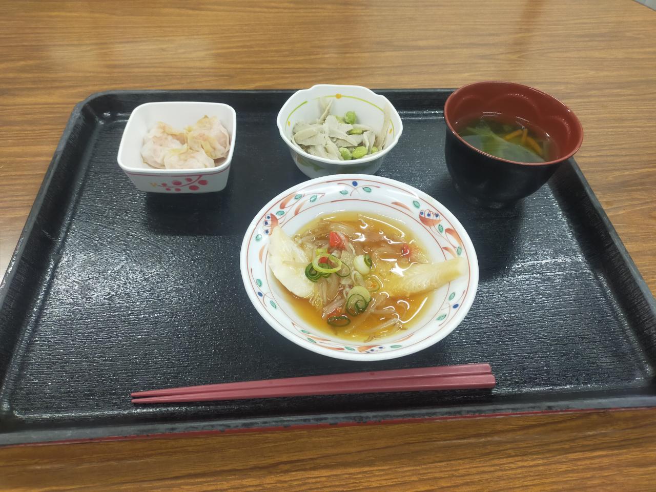本日の昼食です🍴メインは「カレイの中華あんかけ」でした。