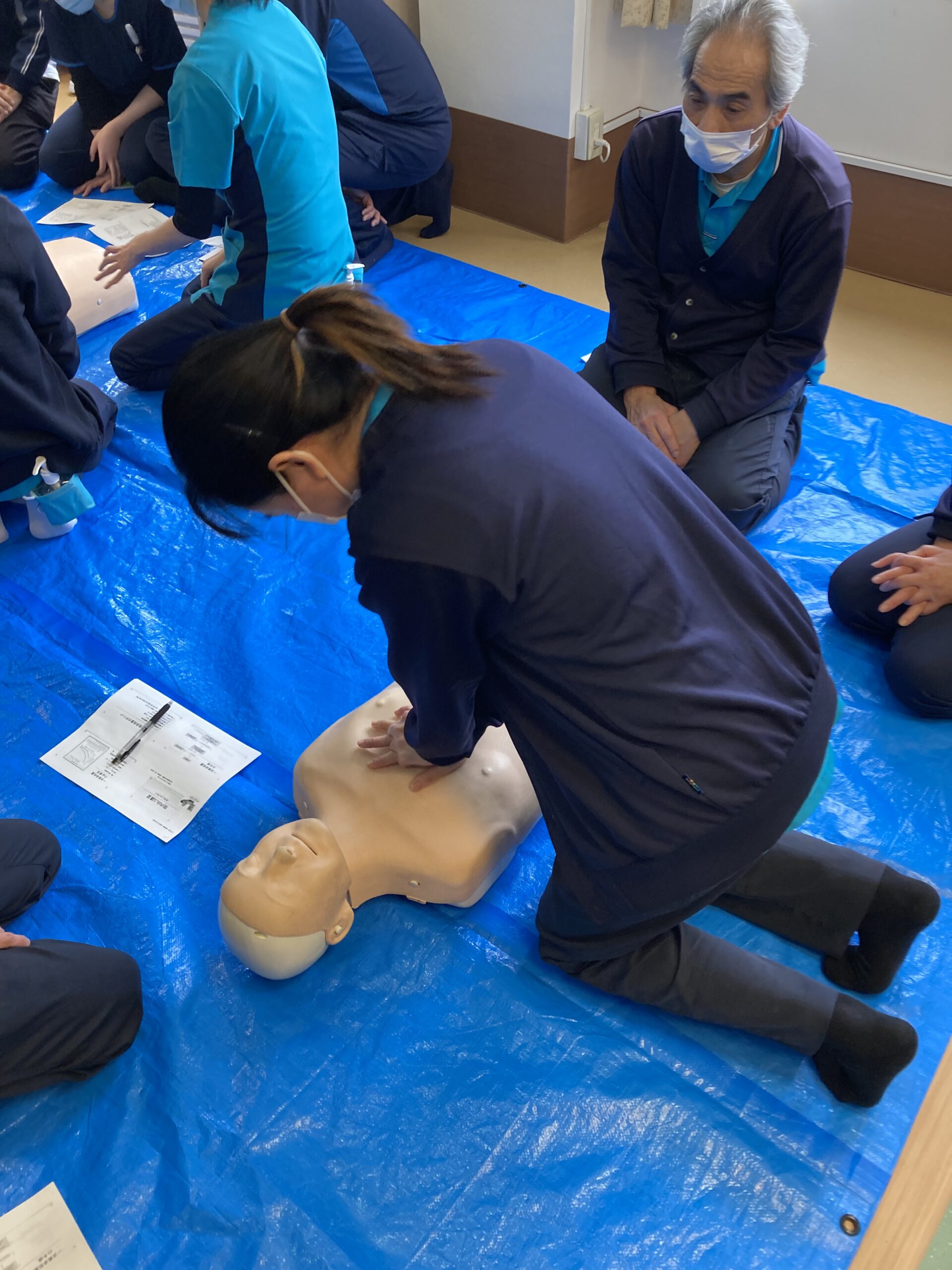 今回の研修は菊水苑の入居者様はもちろん、自身の家族や外出先で突然急変された方を助けるためのとても大切な実践研修でした。