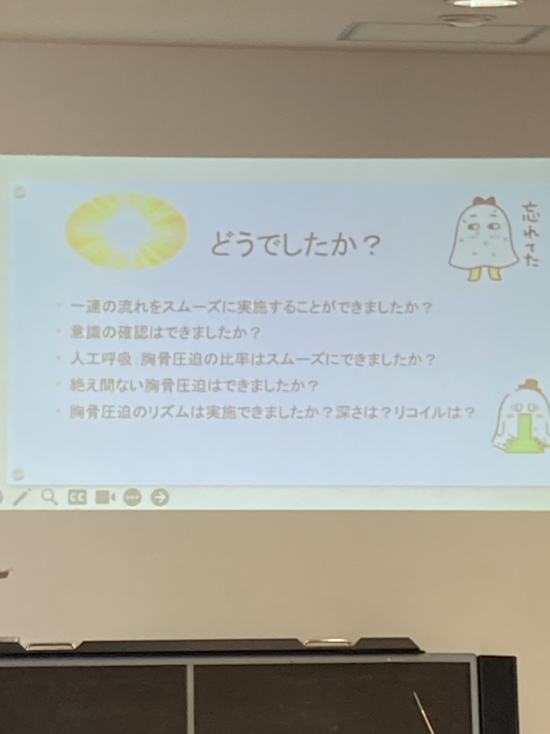 人工呼吸よりも、胸部圧迫を絶え間なく行うことが重要とのお話でした。