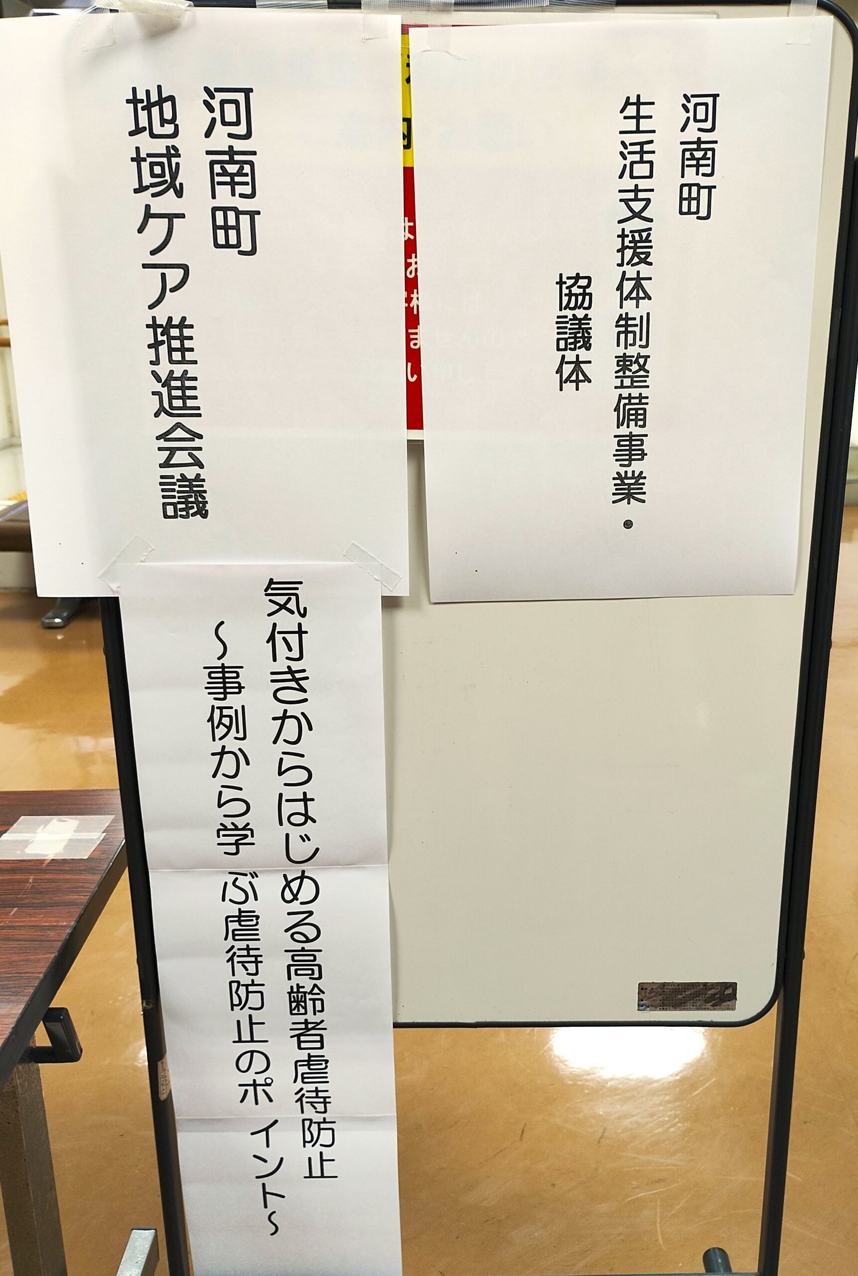 本日は河南町で開催された「気付きからはじめる高齢者虐待防止」の研修に参加しました。