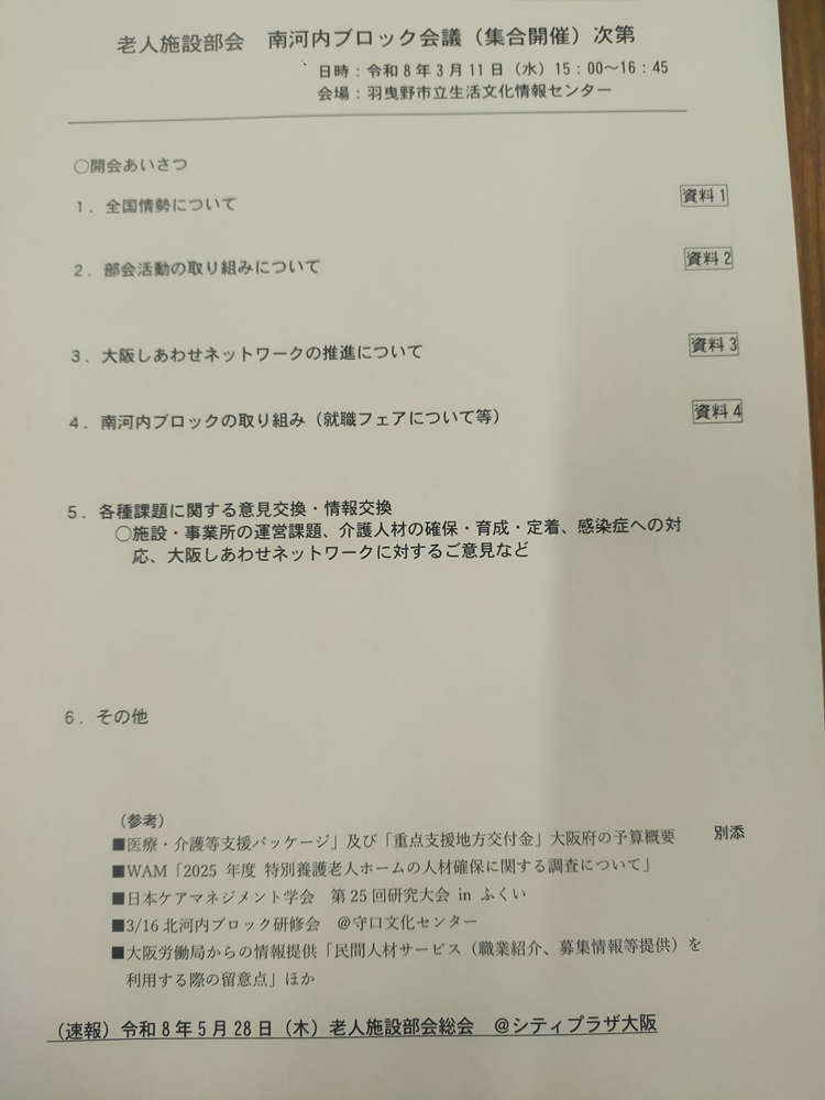 令和8年3月11日にリック羽曳野で開催された会議に初めて出席させていただきました。