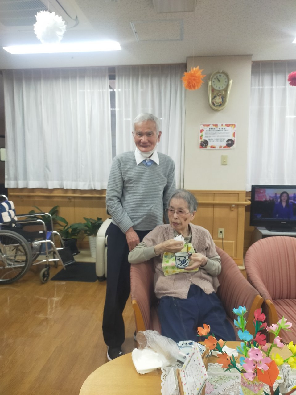 面会 2026年3月31日 面会時、夫婦で喫茶コーナーを利用されました。 喜志菊水苑の利用者様は本当に仲良夫婦が多くてうらやましく思います。 いつまでも健康で仲良くいて下さいね。 面会時に営業中なら是非、喫茶コーナーでゆっくりとお過ごしください。 喫茶コーナーの営業時間 毎週月、火、木、金 AM9:30~AM11:30 PM13:30~PM15:30 となっております。