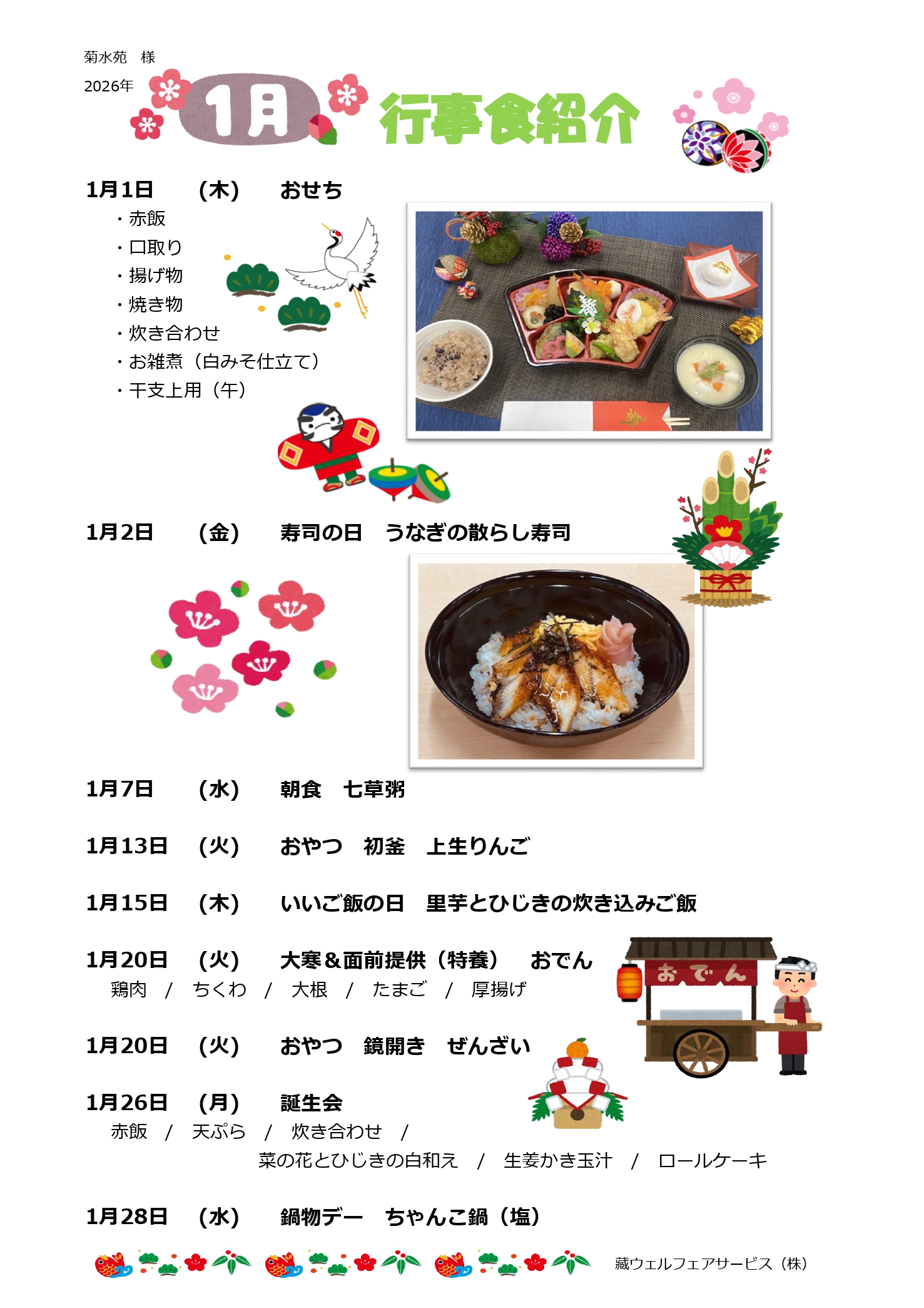1月1日のお昼にはおせち料理・お雑煮をご用意いたします。