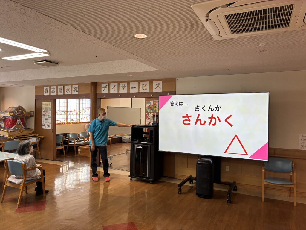 これから、この大画面モニターを使って、オンライン体操や映画の日