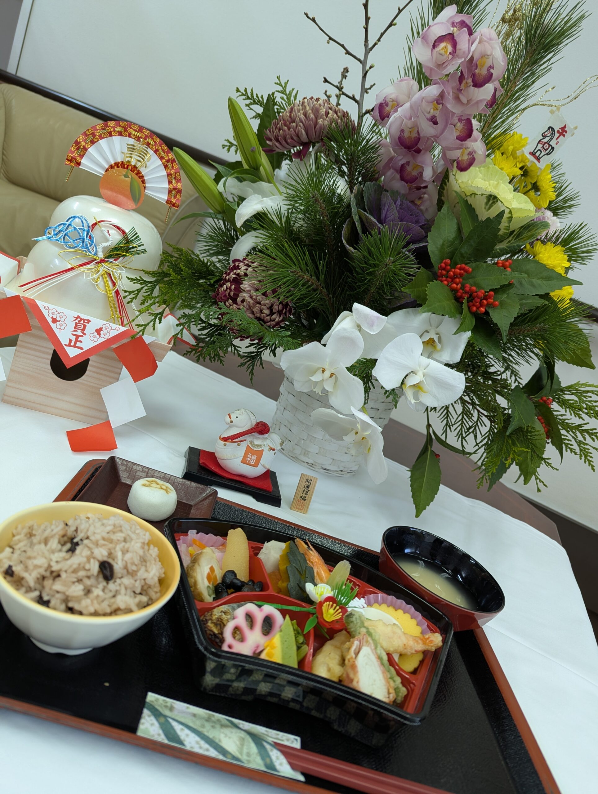 菊水苑も例年通り、1月1日お昼ご飯に「おせち料理」で入居者の方々と新年を感じる時間を過ごしました。